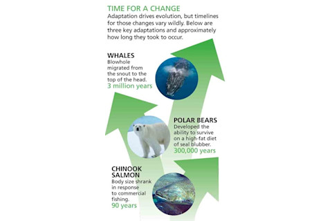 自Reznick首次前往特立尼达以来,其他研究也已证明了适应性的快速驱动,科学家们称之为“快速进化”。曾经认为进化需要数千年的研究人员,现在正在记录物种在几十年甚至更短时间内发生的适应。1863年殖民伦敦地铁的蚊子,现在已经发生了如此大的变化,以至于它们无法与地面上的同类繁殖。1920年代商业捕捞增加后,从阿拉斯加到加州的帝王三文鱼在人类一代的时间里就变得更小、寿命更短。适应正在我们眼皮底下,在我们有生之年发生。