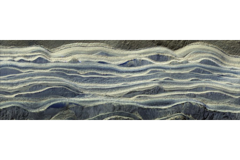 在火星的一些区域,冰层和沙层清晰可见。在这里,冰层显示为浅色,沙层显示为较深的蓝色。(图片来源:NASA/JPL/亚利桑那大学)