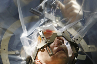 佛罗里达大学的外科医生使用制图软件规划电极插入患者大脑。Bob Croslin