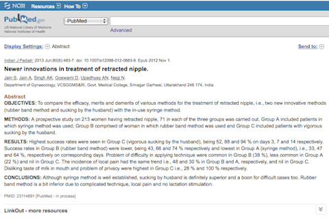 乳头内陷治疗的新创新。 "目的:比较各种乳头内陷治疗方法的疗效、优点和缺点,即两种新的创新方法(橡皮筋法和丈夫吸吮法)与正在使用的注射器法。方法:对213名患有乳头内陷的妇女进行前瞻性研究,每组71人。A组包括使用注射器法的患者;B组包括使用橡皮筋法的妇女;C组包括丈夫积极吸吮的患者。结果:C组(丈夫积极吸吮)的成功率最高,第3、7和14天分别为52%、88%和94%。B组(橡皮筋法)的成功率较低,分别为43%、66%和74%,而A组(注射器法)的成功率最低,相应天数分别为33%、47%和64%。B组(38%)普遍存在技术应用困难的问题,A组(22%)不太常见,C组则没有。局部疼痛的发生率也呈相同趋势,B组和A组分别为48%和30%,C组则没有。C组最容易出现不喜欢嘴里有奶味和隐私问题,分别为28%和100%。结论:虽然注射器法已经很成熟,但丈夫吸吮绝对更胜一筹,也是解决疑难病例的福音。由于技术复杂、局部疼痛且没有刺激泌乳,橡皮筋法略逊一筹。"