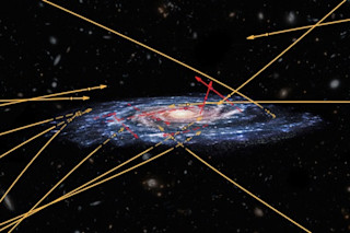 在发现的 20 颗高速恒星中,只有七颗(红色)似乎起源于银河系内部。其余 13 颗(黄色)则似乎完全来自另一个星系。Marchetti 等人 2018;(图片来源:NASA/ESA/Hubble) 银河系显然是恒星从其他星系移民的热点。在一项发表于《皇家天文学会月报》的新研究中,三位天文学家着手寻找逃离我们星系的恒星,但令人惊讶地发现,大多数快速移动的恒星实际上是从更遥远的星系冲入银河系。“与飞离[银河系]的银河中心相比,我们看到的许多高速恒星似乎正在冲向它,”莱顿天文台的博士候选人、该研究的首席作者 Tommaso Marchetti 在新闻稿中说道。“这些可能是来自另一个星系的恒星,正飞速穿过银河系。”