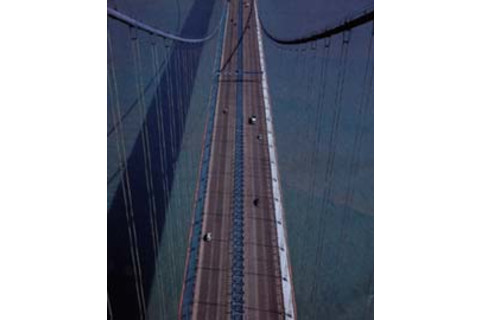 安装在香港青马大桥两座 50 层高塔上的 GPS 传感器,以及沿 10 万英里悬索线战略性布点的传感器,监测着港口因强风引起的运动。这座大桥能够承受高达每小时 212 英里的阵风。
