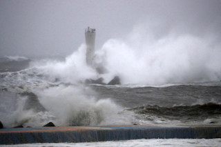 最近,来自天空最具破坏性的威胁以台风的形式出现,热带气旋的最大持续风速高于每小时 74 英里。当台风维拉于 1959 年 9 月登陆时,记录到的中心表面气压为 929 百帕,是历史第二低。(气压较低的热带风暴往往威力更大。)在日本主岛本州南部海岸名古屋港,潮汐达到 3.89 米——近 13 英尺——创下历史新高。