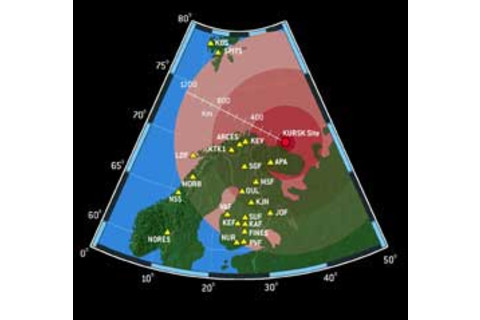 “库尔斯克”号的爆炸在巴伦支海引发了地震波,并传入斯堪的纳维亚半岛,20多个地震台站接收到了这些波。
