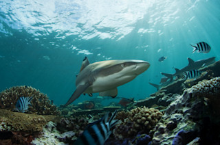 恐惧的海景?新研究表明,对鲨鱼的恐惧会塑造生态系统。图片来源:Narchuk/Shutterstock 我们的恐惧可以塑造我们的行为,这一点令人难以置信。当《大白鲨》于 1975 年上映时,它从根本上改变了我们与鲨鱼互动的方式。在随后的几年里,我们对这些大型海洋掠食者的捕猎更加激烈,并开始将它们视为可怕的怪物——这种态度至今仍是科学家们在努力改变的。虽然我们的恐惧在很大程度上是没有根据的,但有许多物种确实有理由对这些令人敬畏的鱼类保持警惕。科学家们现在发现,这种恐惧会通过珊瑚礁生态系统产生涟漪效应,影响到海藻的群落结构。毫无疑问,鲨鱼可能有点吓人,尤其是如果你是一条小小的鱼。科学家们长期以来一直怀疑这种恐惧会改变行为。就像害怕鲨鱼的人会避开海滩度假一样,被捕食的鱼类可能会试图避开鲨鱼出没的区域,希望避开那些锋利的牙齿。而鱼类避开的地方,它们所吃的物种也会发生变化,这是一种海洋版的“猫不在,老鼠就玩”。因此,通过创造恐惧景观——或者,在这种情况下,是恐惧海景——鲨鱼可以塑造整个生态系统,即使它们实际消耗的猎物数量微不足道。已经显示了其他掠食者的级联效应。仅仅是狗叫的声音就能让浣熊恐惧到忘记进食。而当这种情况发生时,浣熊捕食的无数物种,从鸟类到螃蟹,都会蓬勃发展。但总的来说,“恐惧景观”假说的论证很少见。我们不仅不知道对鲨鱼的恐惧可能如何塑造海洋栖息地,我们对鲨鱼与其他物种互动的总体理解也缺乏。尽管我们每年都有关于鲨鱼的庆祝活动,并且对这些可怕的鱼类着迷,“但我们对它们在自然界的生态作用的理解仍然非常基础,”Bigelow实验室的高级研究员Doug Rasher说,在一份新闻稿中。因此,他与同事们决定仔细观察,重点关注鲨鱼对斐济海岸浅水珊瑚礁栖息地的影响。