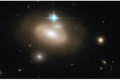 了吗,那些被扭曲的更遥远星系的弧形光线?我在这张图片中至少发现了一个。我敢打赌还有更多!这样的图像是一个宝库。尽情挖掘吧。