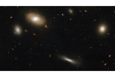 ),但它们的起源尚不清楚。这个非常独特,而且看起来与图像中的任何其他结构都没有关联(环上大约在两点钟方向的物体很可能是一个背景星系)。有趣!当你观察密集星系团时,你应该期待看到有趣的星系。为了证明这一点,看看这个大杂烩: