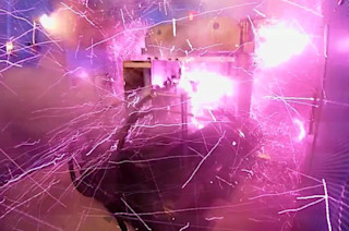 当来自东京大学固体物理研究所的物理学家启动他们的 4 亿安培百万高斯发生器系统时,能量迸发,火花四溅。这相当于普通闪电电流的数百倍。