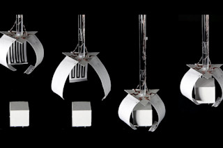 (图片来源:卡内基梅隆大学) 用……纸做的机器人?卡内基梅隆大学人机交互研究所的研究人员开发了一种巧妙的方法,让普通的纸张焕发生机。该团队使用廉价的3D打印机,在纸上涂覆一层薄薄的导电热塑性材料,这种材料受热时会变得柔软,冷却后会恢复其原始的硬化形状。当研究人员施加电流时,熔化的热塑性材料会使纸张弯曲、折叠或展平。然后,当移除电流时,它会弹回其原始形状。HCII助理教授林瑶(Lab Lining Yao)与她的团队在变形物质实验室开发了这种新颖的驱动技术。“我们正在重新发明这种非常古老的材料,”她在本周早些时候的新闻稿中说道。研究员王冠云补充说:“大多数机器人——即使是用纸做的——都需要外部电机。我们的机器人不需要,这为机器人技术、互动艺术、娱乐和家庭应用创造了新的机会。” 除了这种抓取机,该团队已经制造了诸如形状可变的灯罩和触摸时展开叶子的纸质含羞草等物品。