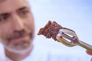 这张图片展示了以色列初创公司Aleph Farms制造出的世界上第一块实验室培育的牛排。它不同于标准的素食人造肉,后者试图模仿真实肉类的风味和质地。相反,实验室培育的肉类,或称“清洁肉类”,使用真实的动物细胞。为了培育肉类,Aleph Farms公司取样了牛的脂肪、血管、肌肉和支持细胞,并在实验室中培养它们。为期三周的3D组织形成过程,最终将其整合在一起,制成了一块无需屠宰的牛排,烹饪时间大约一分钟——因此Aleph Farms公司将其原型命名为“一分钟牛排”。