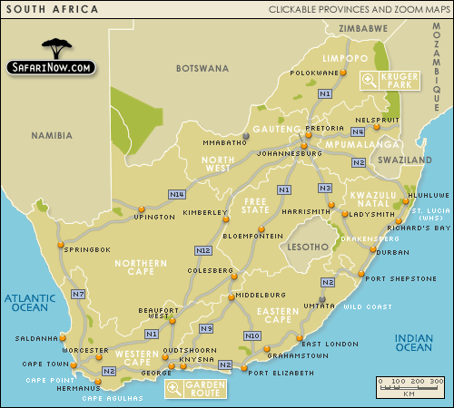 来自 Safarinow.com 的南非地图。