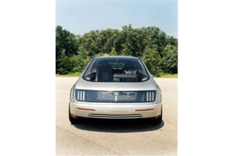 高能见度 Hy-wire的前部有两个挡风玻璃:一个大的、传统的上方面板用于远距离观察,一个安装在鼻子上的小面板用于观察保险杠附近约两英尺内的物体。侧面可见度也非常令人印象深刻,因为工程师们取消了前后门之间的立柱。超过30项专利保护了该车的创新。给这款车命名归功于14岁的Aleksei Dachyshyn,他是通用汽车一位高管的儿子,他的目标是捕捉这款车两个关键技术:氢燃料和线控驱动。