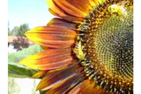 我几分钟前在等待一个无能的酒店员工时拍下了这张照片。不知怎的,被忽略的感觉并没有那么糟糕,因为我得以观看这两只小家伙(实际上是雌蜂)在办公室后面的美丽的向日葵上攀爬。我的相机有一个很棒的微距模式,所以我能够获得相当好的分辨率: