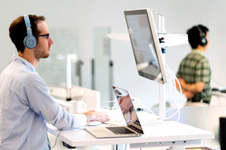 软件工程师罗伊·莱文在AI2西雅图总部的宽敞、反主流文化的办公室里工作。图片来源:Stuart Isett