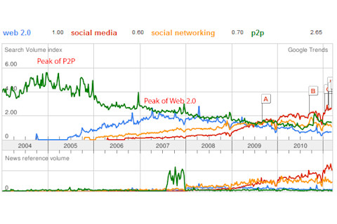 2006-2007 年,我曾在一家拥有自己网络应用程序的公司工作,“Web 2.0” 是营销材料中的一个热门词汇。这篇文章来自 DealB%k,这是否是新的科技泡沫?让我们看看它是否会破裂,让我思考这个术语发生了什么。这是 Google Trends: