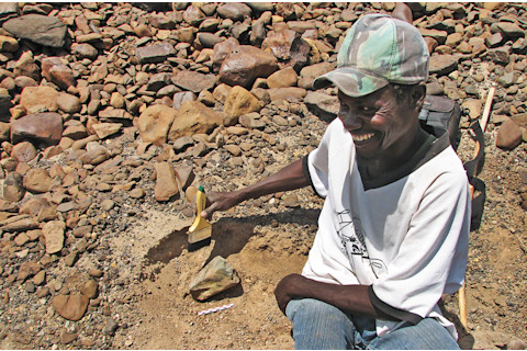 研究团队成员 Sammy Lokorodi 发现了一些部分暴露的石器,这些石器大约制造于 330 万年前,是迄今发现的最古老的石器。| MPK-WTAP