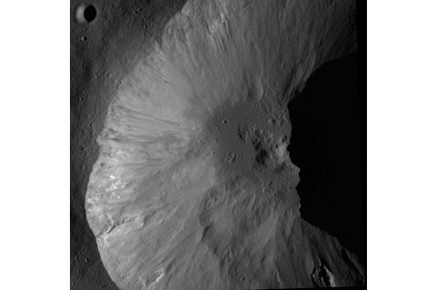 2012年4月,黎明号探测器距离小行星维斯塔表面仅272公里(170英里)时,拍摄了这张精彩的照片,展示了利西尼亚陨石坑: