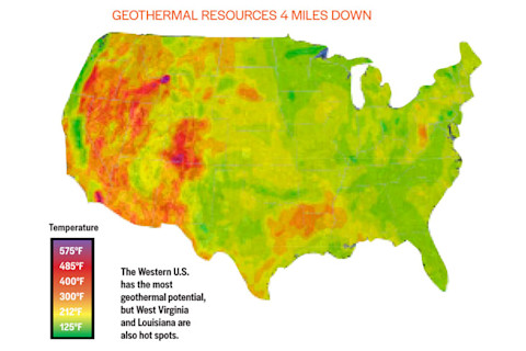 由于一个不太可能的朋友——天然气行业,对地热能的支持突然变得更有可能。天然气行业目前正处于一个疯狂的繁荣期,这得益于被称为“水力压裂法”的争议性钻井技术的广泛采用。“我们发现,许多已经钻探的天然气井会产生大量热水,”地热能源协会(Geothermal Energy Association)执行董事卡尔·加威尔(Karl Gawell)说。其中许多被水力压裂过的井可以被重新设计,获得第二次生命,成为地热能的来源。