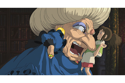 女巫汤婆婆在《千与千寻》中俯视着主角千寻。(图片来源:Studio Ghibli)