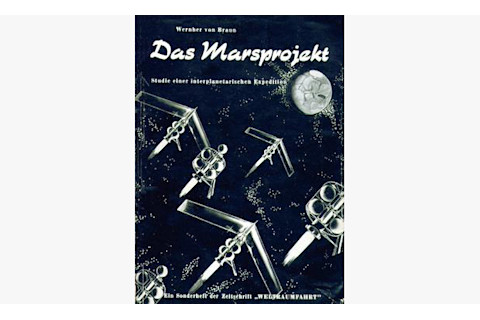 沃纳·冯·布劳恩的《火星计划》是第一个技术上全面的火星任务设计。它涉及有翼飞行器,用于运载数十名宇航员到达火星表面。(图片来源:维基共享资源)