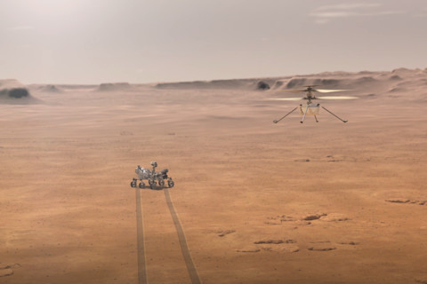 部署“灵巧号”后,“毅力号”火星车将行驶数百英尺,远离直升机,以便安全地观察初步飞行。(图片来源:NASA)