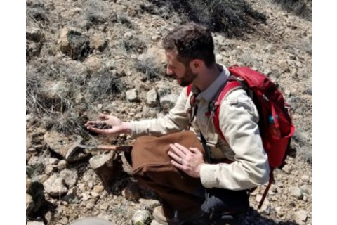 安德鲁·齐普金在亚利桑那州采集黑曜石样本。(图片来源:由Ben Walker提供)