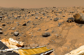“探路者”号任务降落在火星的阿瑞斯谷,在那里,“索杰纳”号火星车对可能被洪水侵蚀的岩石进行了编目。来源:NASA/JPL