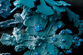 韦尔金和埃尔贝已经对成千上万片雪晶进行了成像,这些雪晶的来源近至他们贝尔茨维尔实验室外的停车场,远至阿拉斯加。接下来的几页将展示这些令人惊叹的形状,包括葡萄状团块、六边形冰板、破碎的冰柱和布满麻点的星星。所有这些都展现了水的奇妙复杂的、多变的本质。