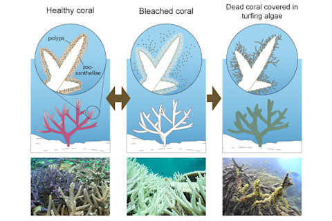 澳大利亚大堡礁海洋公园管理局关于珊瑚白化与死亡的图解。人们曾希望,尽管4月份报告的白化珊瑚礁比例令人心痛,但大多数珊瑚礁都能挺过这场风暴。但经过对84个不同珊瑚礁上超过10万株珊瑚的调查后,结果是严峻的。大堡礁的珊瑚长期以来一直在挣扎。科学家们估计,在1985年至2012年间,大堡礁损失了超过50%的珊瑚。一些珊瑚死于由农业径流引发的棘冠海星爆发,另一些则被气旋摧毁或因水温升高而死亡。每年,珊瑚礁的珊瑚损失近3.5%。但珊瑚礁从未像这次最近的白化事件那样受到如此严重的打击。科学家们现在估计,从昆士兰州汤斯维尔到巴布亚新几内亚的北部和中部珊瑚礁区域,有35%的珊瑚已经死亡。这相当于在一个夏天里损失了十年的珊瑚。
