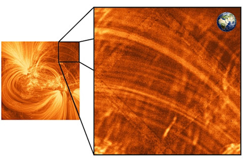 这些新的近距离图像是由美国宇航局的高分辨率日冕成像仪(Hi-C)拍摄的。它们显示了前所未见的、穿过太阳大气的精细磁力线束。这些磁力线勾勒出磁场本身,由于其中捕获了百万度等离子体的粒子而可见。每条磁力线的宽度仅约 310 英里(500 公里),大约相当于芝加哥到克利夫兰的驾驶距离。
