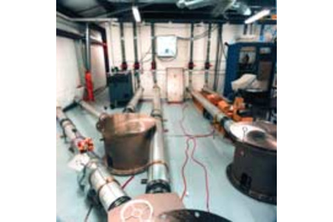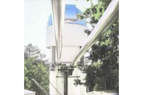 CHARA(高角分辨率天文学中心)阵列通过复杂的导管系统从六个独立的望远镜收集星光。两根直径8英寸的真空管道从W2(一对西部望远镜中的一个)伸出。中央管道传输来自W2的光;左侧管道传输来自W2更远的双生子W1的光。所有望远镜的光束最终都汇集到中央的光束组合实验室。