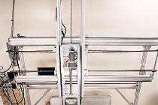 在国家科学基金会的资助和工程学研究生 Dooil Hwang 的协助下,Khoshnevis 设计并建造了一台墙体制造机。“我给了自己三年时间来建造它,但只花了 18 个月,”Hwang 说。这台结实的机器使用了两份标准混凝土混合料(“你可以在家得宝直接买到,”Khoshnevis 说)、两份沙子和一份水,通过一个螺杆驱动的柱塞从钢制气缸中挤出。混合料会快速凝固,并在挤出后续层时轻松支撑自身重量。