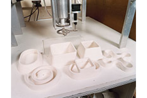 为了证明自动抹刀可以奏效,他发明了一个小型机器,用于制作不超过 20 英寸的物体。这个小型的轮廓成型器在计算机辅助设计程序的指导下,其喷嘴可以在三个轴上移动,像挤牙膏一样挤出陶瓷粘土。一对抹刀状的鳍片在层层堆叠时会抚平顶部和侧面的表面,从而产生由软件指定的立方体、盒子、碗、圆顶、圆锥体或其他形状。该设备与快速原型机相似,后者已被用于制造三维塑料模型约 15 年,但抹刀“允许对外表面进行新的控制程度,”Khoshnevis 说。