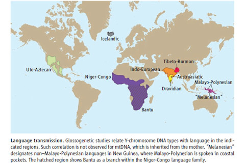 在A Replicated Typo网站上,他们正在讨论科学杂志上的一篇短文,母语和Y染色体。Peter Forster和Colin Renfrew在文中指出:“一种相关性正在显现,表明一个已经有人居住的地区的语言变化可能需要一定比例的移民男性,正如Y染色体DNA类型所反映的那样。” 但有一个问题:他们在论文中没有计算相关性。 而是,他们正在进行描述性的口头观察。 这种观察表面上看起来是合理的。 除了提供的例子之外,还可以加上拉丁美洲的案例,那里混血人口往往具有欧洲Y染色体特征和本土mtDNA。 在Renfrew和Forster引用的一个更细致的例子中,他们指出,虽然在说南岛语的新几内亚居民中,南岛语mtDNA和Y染色体都有相当的渗透,但说巴布亚语的居民中几乎没有南岛语Y染色体。 换句话说,推论是本土土著男性精英延续了巴布亚语! 我认为这里的关键问题是社会支配地位,以及男性文化单位的作用。 当你有一个像非裔美国人这样的群体时,这一点很清楚。 尽管这个种族群体主要起源于西非,但它显然有约20%的欧洲血统,主要通过欧洲男性传播。 这仅仅是欧洲男性相对于非洲男性社会支配地位的体现。 而且,可以说,非裔美国人是一个说英语的基督教人口,尽管他们有自己独特的口音。 作者在论文中指出