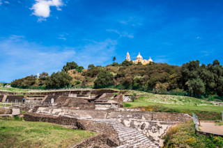 在城市中心,一座巨大的山丘高耸于平原之上。尽管当地人称之为 Tlachihualtepetl(“人造山”),科尔特斯似乎认为它是一个自然地貌。因此,当他的士兵屠杀数千名当地人并系统地摧毁他们的仪式建筑时,他们错过了一座——隐藏在山丘中的乔鲁拉大金字塔。