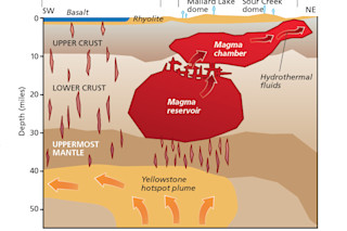 根据发表在《科学》杂志(Science)4 月份的研究结果,新发现的岩浆体的横截面显示,其体积比上方的岩浆室大四倍以上,这使得黄石公园成为地球上最大的火山地点之一。