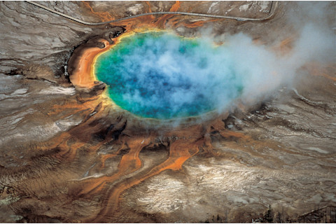 黄石公园的宏伟棱镜泉景色壮观,蒸汽弥漫,这正是这座公园归功于其下方巨大的超级火山的众多地热特征之一。| “地球之窗”,罗伯特·B·史密斯和李·J·西格尔