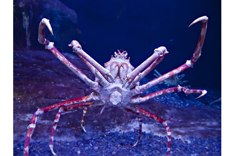 巨型日本蜘蛛蟹潜伏在西北太平洋深处,是世界上最大的现存螃蟹。其令人印象深刻的甲壳alone 宽度可以达到 12 英寸,其腿从一只螯到另一只螯可伸展长达 12 英尺。这种高效的海底清道夫用它的十条附肢——八条用于行走,两条带有利爪——来吞噬从上方漂下来的残骸或死亡动物。