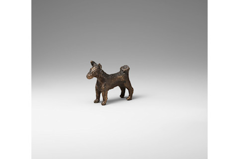 虽然猫在古代美索不达米亚的城市中游荡,但狗却作为猎人和牧群及家庭的保护者而工作。它们在这些角色中的可靠性备受推崇,以至于许多古代美索不达米亚人佩戴着狗的护身符和雕像,包括上面这尊近3000年前的雕像,作为个人保护物品以及健康和康复的象征。