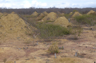 在巴西东北部的一片热带森林里,大约有两亿个泥土堆,占据了相当于大不列颠岛大小的区域。这些圆锥形的泥土堆的高度大约是美国普通成年男子的两倍,底部直径有30英尺。这些蚁丘是无数代白蚁的杰作,大约每65英尺就从地面升起一个,从太空中都能看到。