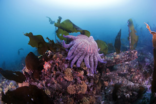 在过去十年中,被称为海星枯萎病 (SSWD) 的疾病已经消灭了超过 90% 的太阳花海星。这些海星可以长出 24 条腕足,体型可达自行车轮胎大小,它们也支撑着海带森林。