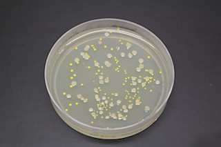从冰下惠兰斯湖水柱样本中培养出的细菌菌落。图片来源:Brent Christner