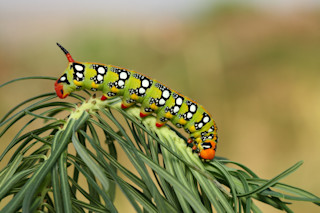 一只天蛾幼虫。(学分:Chekaramit/Shutterstock) 这是一种命运的转折,放在恐怖电影里也不会显得突兀:一群年轻而饥饿的毛毛虫,像排炮一样涌向一株毫无防备的番茄植物大快朵颐,但当它们开始进食时,事情却急转直下。叶子不再令它们满意,它们开始互相残杀,陷入食人狂潮——疯狂地吞噬,直到只剩下一只,心满意足。或许你可以将此解读为一个类似《魔女嘉莉》的寓言故事,但激起毛毛虫的食肉天性,对于番茄植物来说,只是一个明智的策略。植物根部固定,无法移动,是昆虫的美味目标,它们不得不发展出其他的防御手段——例如让它们的捕食者互相攻击。植物在生命之树中释放各种防御性化合物来保护自己——有些只是让它们不那么诱人,而另一些则产生更阴险的效果,比如召唤寄生蜂在攻击者身上产卵。碰巧,这是其中一种……更……生动……的防御。