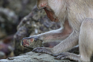 一只猕猴正在使用石器工具砸开贝类。(图片来源:Luncz et. al/eLife) 工具的出现对人类来说是一件大事。它使我们能够更轻松地操纵环境,塑造地球以服务于我们自己的利益——从福尔瑟姆矛头到 iPhone X。一些动物也使用工具,比如泰国的猕猴,它们发现如果先用石头砸开喜欢的贝类零食,会更容易吃到。它们已经成为熟练的贝类破坏者,以至于猕猴实际上正在威胁一个小岛上牡蛎和蜗牛的生存。这是一个关于技术失控的故事——只是这次,人类不是反派。