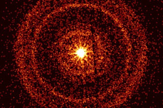 (图片来源:ESA/XMM-Newton/M. Rigoselli/INAF) XMM-Newton 望远镜探测到的被尘埃云散射的 X 射线环。