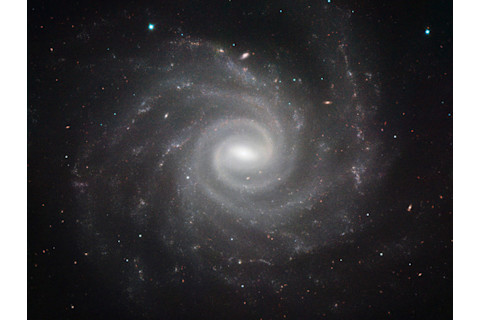 [点击进入星系模式。] 那是 NGC 1232,一个正面朝向的开放螺旋星系,距离地球约 6500 万光年。在我看来,这是一个完美的螺旋星系:旋臂清晰且易于追踪,从中心附近开始并环绕整个星系。可以看到几条短的、不连续的、更直的分支。还有一个棒状结构:星系的中心不是球形的,而是拉长成椭圆形。所有这些特征都是由星系奇特的引力场造成的。在我们的太阳系中,太阳在引力方面起主导作用,行星绕其运行。然而,在一个大的星系中,每颗恒星的引力都会叠加,使得距离中心越远的引力就越强,而不是所有质量都集中在那里。这会导致各种奇特的现象,如棒状结构、螺旋和分支。 我有一篇博文详细讨论了这一点,如果你想阅读的话。顺便说一句,考虑到 NGC 1232 的距离为 6500 万光年,你在这张图像中看到的来自这个星系的光子离开它时,恐龙仍然在地球上漫步……但它们的时代即将结束。