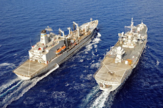 美国海军燃料补给舰在2013年10月于地中海为“马উন্ট·惠特尼”号(右)补给燃料。(美国海军通讯专家一级科林·特纳拍摄/发布) 美国海军的阿利·伯克级驱逐舰通常每小时消耗1000加仑的石油燃料。海军的大部分舰队都对燃料有着同样的旺盛需求,而为这些庞大的军舰补给燃料可能会中断任务,并在恶劣天气中带来挑战。然而,美国海军研究实验室的研究人员已经证明,可以用一种廉价、方便的燃料来驱动引擎:海水。科学家们近十年来一直在努力将海洋转化为燃料。这项突破,在概念验证测试中得到证明,是通过一种特殊的催化转化器实现的,它可以将海水中的二氧化碳和氢气转化为液态碳氢燃料。