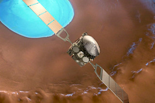 火星快车轨道器位于火星上方。图片来源:欧洲航天局。 欧洲航天局的火星快车轨道器可能不如其迷人的地球对应物“好奇号”(我指的是,它甚至没有Twitter账号)那样引人注目,但随着火星令人惊叹的飞越动画的发布,它本周获得了新的关注。这些场景是由轨道器过去10年来收集的地形数据构建的,它已经绕行星飞行了超过12,000次。在飞行过程中,看看你是否能发现奥林帕斯山,这是我们太阳系中最高的火山,以及水手号峡谷,一系列峡谷几乎覆盖了整个行星表面的20%。 http://youtu.be/x0F4fCNBVAw 这些数据来自航天器的高分辨率立体相机,它一直在以全彩色、3D和约10米的分辨率对整个行星进行成像——在某些地方甚至更精细。除了拍摄图像外,轨道器还使用光谱法分析火星表面和大气层的化学成分,并使用无线电波探测行星的结构。 得到的数据很有趣——但远不如这些视觉效果那样令人叹为观止。