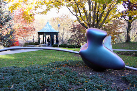 长达 80 英尺的雕塑“多肽华尔兹”是冷泉港实验室园区内的艺术品之一。 | Cold Spring Harbor Laboratory