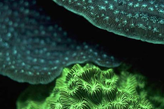 THE MOMENT: Corals glow under ultraviolet light at a depth of 20 feet off Roatán Island, Honduras. The fluorescence of some corals was first observed half a century ago, but its function remains a mystery. In October a team of biologists announced the discovery of fluorescence in 28 additional species of coral. The researchers speculate that the glow may attract the symbiotic algae that provide corals with key nutrients, since the algae tend to gather around green light. THE SHOT: This photograph was taken by marine biologist Charles Mazel using a waterproof Nikonos III camera with a 35mm lens, ISO 200, f/4, 1/60 second.